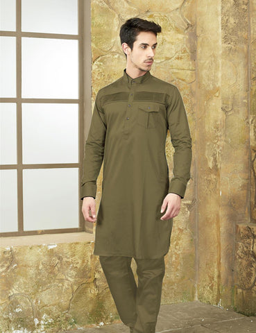 This attire is smartly replacing the traditional Sherwani that grooms wear during weddings and which men wear during other occasions because it gives abundant freedom of movement and comfort and looks equally rich and fashionable. It is also more appealing and enhances the overall personality and charm by portraying a very contemporary yet traditional look. You can club this ensemble with traditional mojris and can effortlessly capture many glances. Clothing of this style does not require sporting a stole or a dupatta. The design and cuts are enough to make you appear and feel attractive and trendy.
